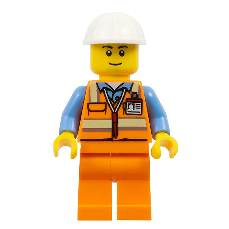 LEGO Minifigure - Male, Construction Worker, Safety Vest with ID, White Helmet (2022) [CITY]